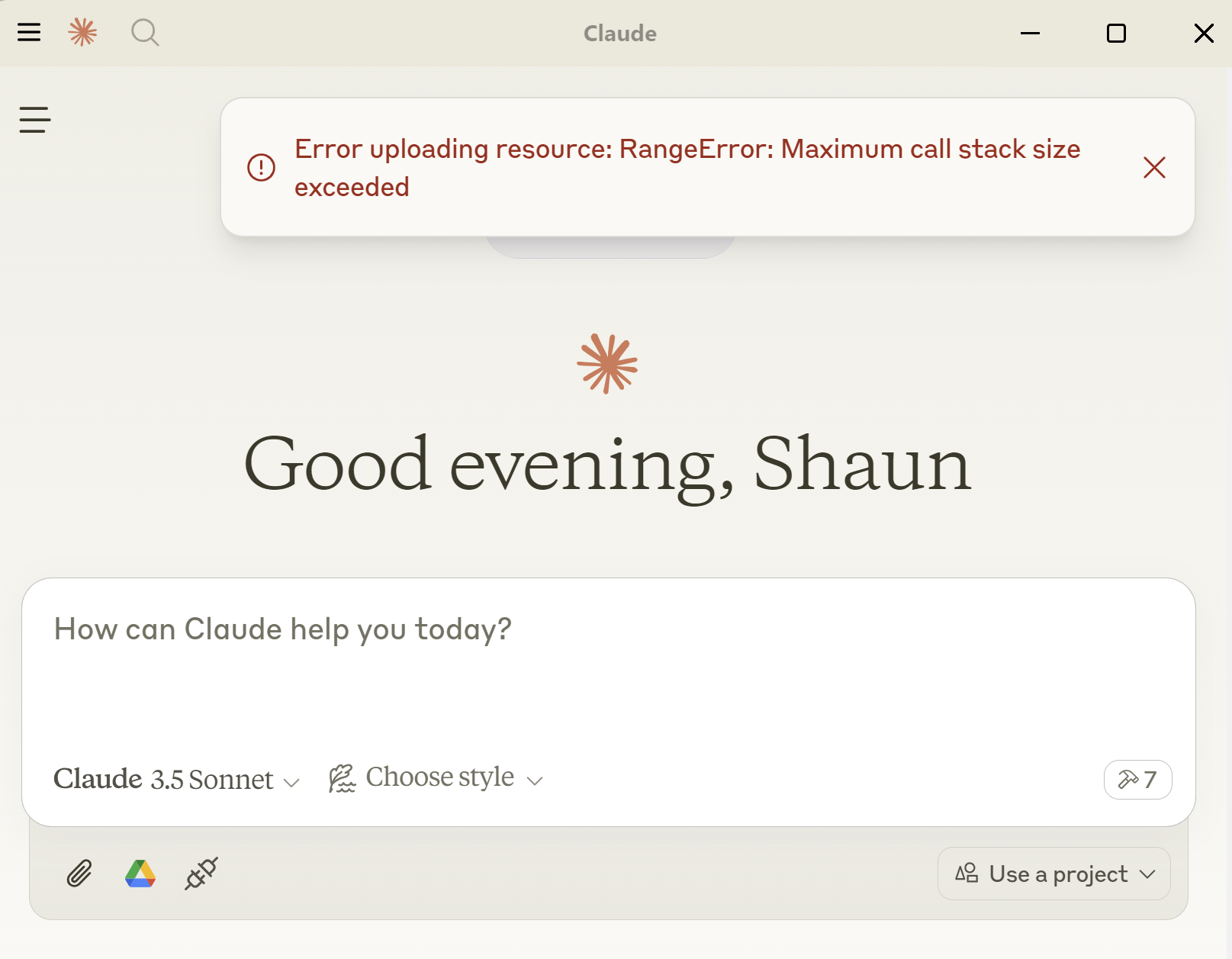 Claude Desktop error message for oversized resource